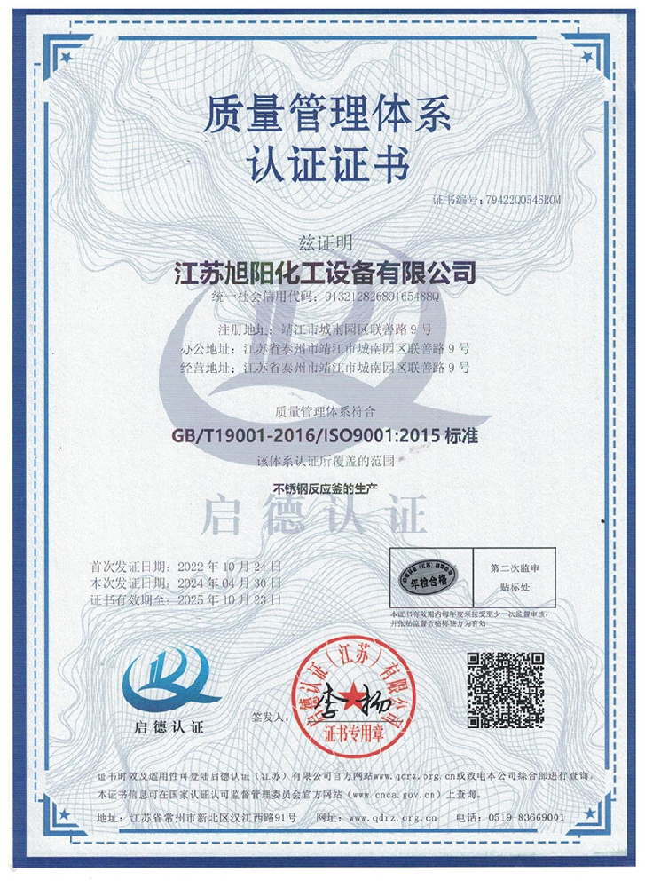 江蘇旭陽化工設(shè)備有限公司專業(yè)從事各類化工、環(huán)保、制藥、發(fā)酵、食品、新材料、鋰業(yè)等項(xiàng)目設(shè)計(jì)、制造及壓力容器的生產(chǎn)制造,是一家集研發(fā)、生產(chǎn)和進(jìn)出口貿(mào)易于一體的高科技企業(yè)。